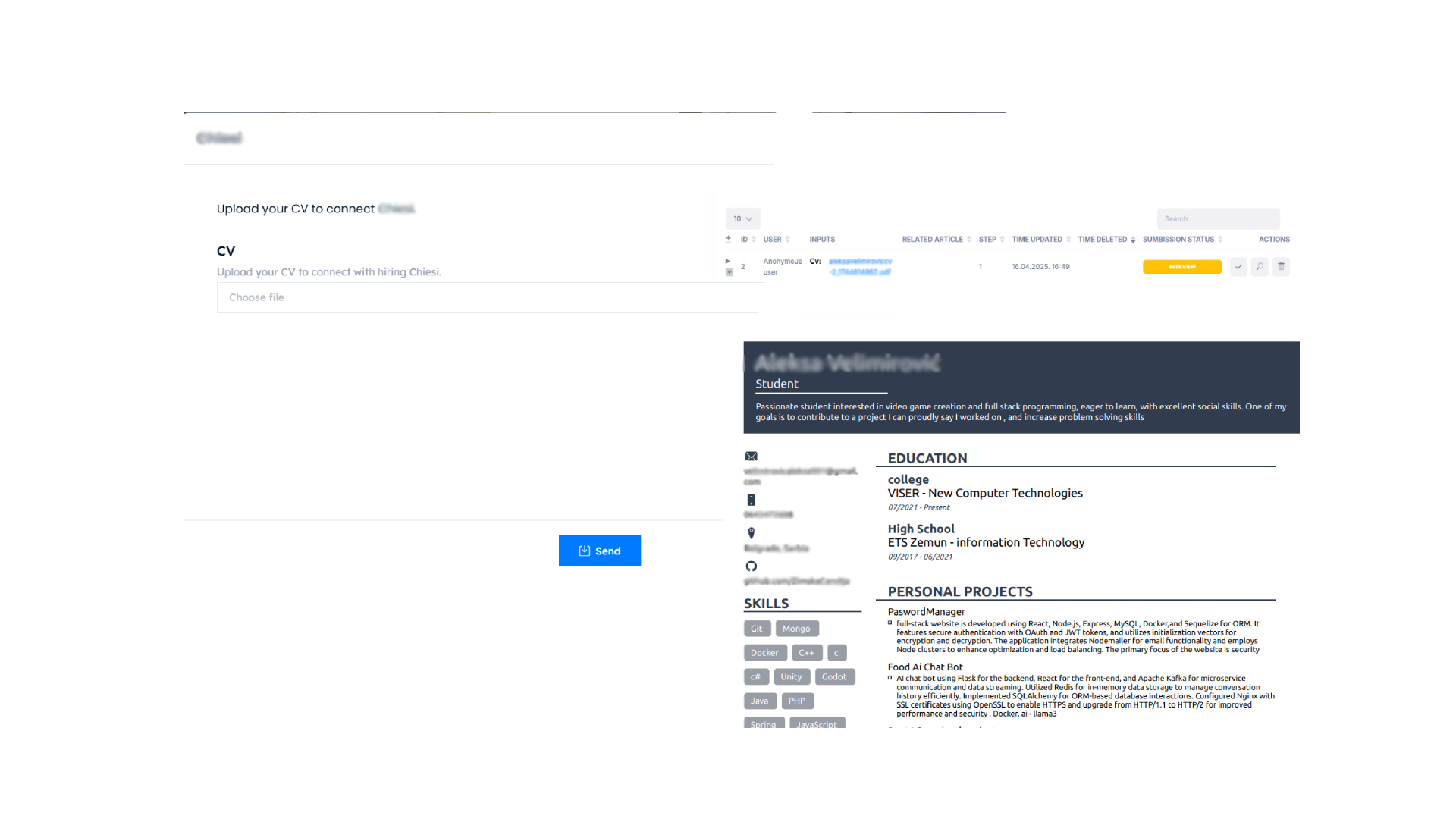 Visitors can upload their CV, allowing exhibitors to view and connect with potential candidates directly within the booth.